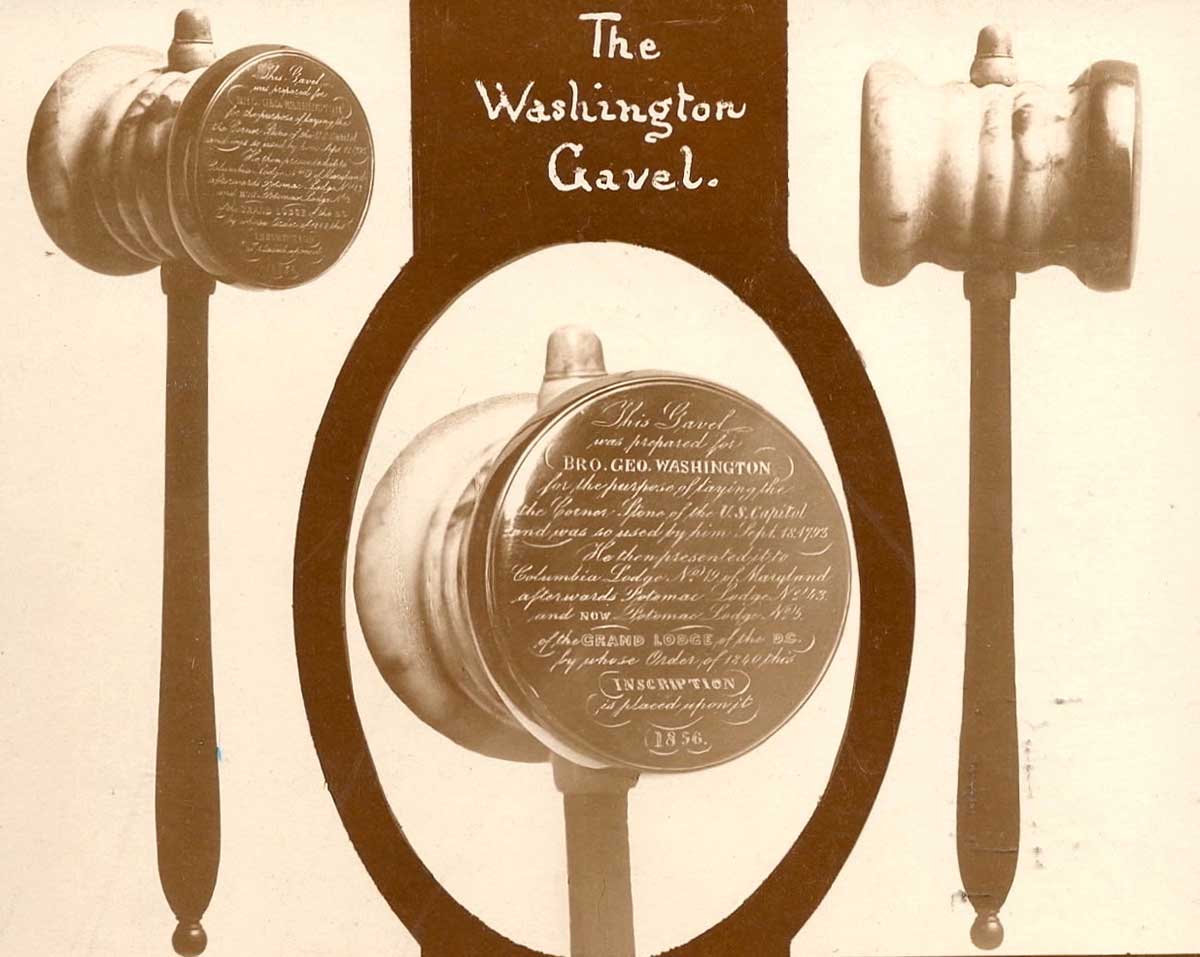 On September 18, 1793, members of the lodge met in Georgetown about 10 a.m. and were soon joined by Lodge No. 22 of Alexandria, Virginia. Both lodges proceeded to a point on the north bank of the Potomac River where they awaited the arrival of President George Washington. Upon his arrival both lodges acted as his escort and proceeded to the new City of Washington. There they were met by the newly chartered Lodge No. 15 of Maryland (now Federal Lodge No.1) and by the Grand Master Pro Tem of Maryland [Joseph Clark, Master of Lodge No. 12 at Annapolis]. The full procession proceeded to the site of the cornerstone of the Capitol. With all three lodges participating, President Washington, acting as Grand Master, laid the first cornerstone of the Capitol of the United States. At the end of the ceremony Washington gifted the gavel used in the ceremony to Valentine Reintzel, master of Potomac.